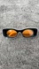 Stylish black sunglasses featuring bold orange lenses. Perfect for a trendy look.