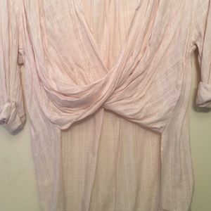 Never worn- pale pink blouse - high low style / cuffed sleeve - lightweight material - size S