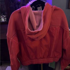 Urban outfitters cropped jacket red denim and sweatshirt size large