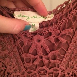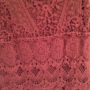 Love this dress. And I've worn it a lot. It's in pretty good confusion. No pulls. Rips. It's gorgeous. I'm cleaning out my closet.. I've got way too much stuff. It's a burgundy pinkish color.