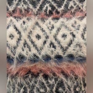 Urban Outfitters fuzzy printed long sleeve sweater blush and black. High low rolled hem. Made of nylon and acrylic. Cropped. Euc