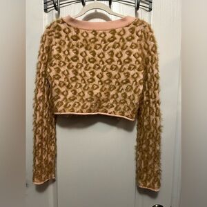 Kimchi Blue Meo Cardigan Fuzzy Animal Print Pink Tan Size S Small Crop Boho