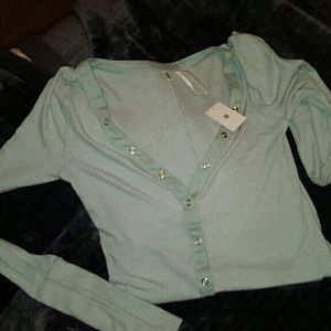 New wit tag teal blue green knit plunging neck button down tshirt.