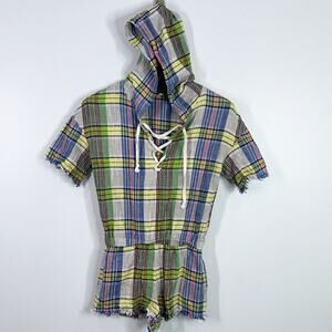 Urban outfitters linen blend plaid hooded romper size small
