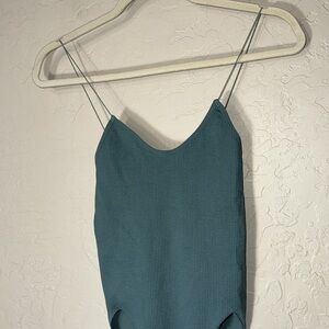 Urban outfitters out from under ribbed bodysuit size small NWT. Sage green color. Tiny straps. Approximate measurements