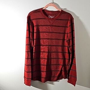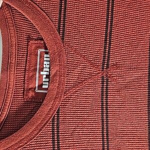 Urban pipeline mens long sleeve shirt waffle fabric. Rust with black stripes. Lg
