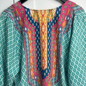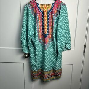 Urban Coco Women Bohemian Neck Tie Printed Shift Dress Turquoise Size Large NWT