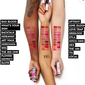 Available colors all sold separately include (as shown left to right in the photo with all lipstick) cream finish unless otherwise noted: