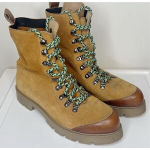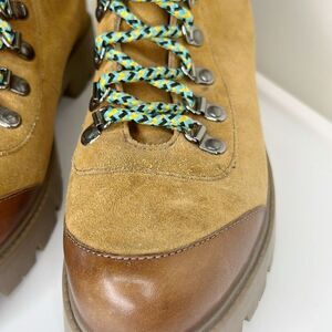Lace-up boots featuring a sophisticated update on the classic hiker style. Features a real suede construction and contrast lace detailing. Finished with a lugged sole and protective rubber toe cap.