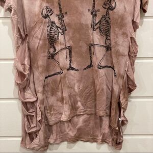 ‘Battle of the Dead' Graphic Twin Skeleton Tie Dyed Bleached Tee with cut out sides and hi low hem