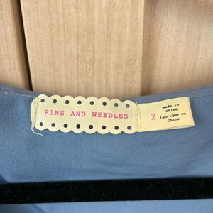 Urban Outfitters / Pins & Needles Ruffle Romper in Light Blue, size 2 - VGUC. Zips at front and has pockets. Small pinhole on pocket as pictured, probably from hangtag. Please see photos for approximate measurements