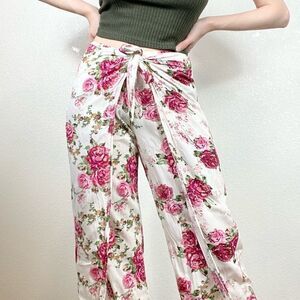 Urban Outfitters Pins & Needles White Floral High Rise Split Tulip Leg Pants