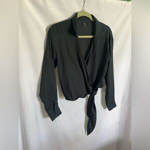 Urban Outfitters Sheer Wrap LUCCA Charcoal Blouse Crop Tie Top Size S