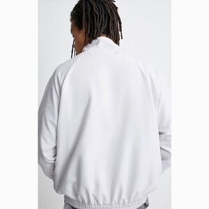 Boxy track jacket from FILA, exclusively available at Urban Outfitters. Long sleeve silhouette is cut from lightweight poly and features a full-length zip front closure that zips through the stand-up collar. Finished with reflective detailing throughout, printed logo at the chest and cinched elastic at the cuffs and hem.