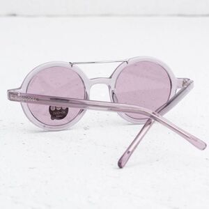 Stylish Belgian eyepieces in fresh lavender edition. Polycarbonate glasses with increased scratch resistance, small logo on top of the glass. Round + flat sunglasses from Komono accented with a slight metal brow bar. Italian acetate frame with custom 3-barrel optical hinge + core wire. Finished with CR-39 lenses that are UV400 protected. Hard case + cleaning cloth included.