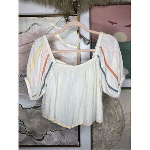Size M, Square neckline, multicolor sleeve embroidery, perfect for summer!