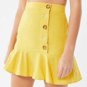 High-waisted mini skirt in a vibrant linen we love, found exclusively at UO. Cut in an A-line silhouette with a button-front closure at the hip + finished with a ruffled mini-length hem. Finish the look with the UO Lily Linen Button-Front Cropped Top.