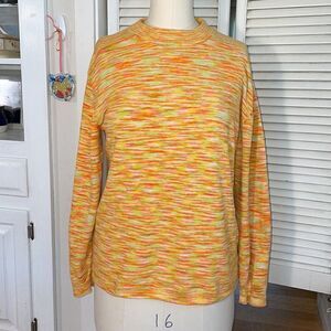 Urban Outfitters Fuzzy Mock-Neck Sweater Long Sleeves Color Yellow Muster with Orange and light Green Size S-P Very Cozy Measurements on Pictures