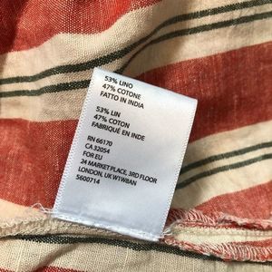 Picturing Super cute Urban Outfitters striped linen mini dress with wooden like buttons woman’s size M. Slight fray around one button and naturally at seams. Perfect for a hot summer day! Cute for baby shower, wedding shower, day date, tailgate, beach, casual outing, festival, graduation. Add a blazer and it’s perfect for office, work, church, temple, professional.