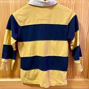 Excellent, very lightly used polo shirt with classic preppy blue and yellow stripes. Lovely thick, soft fabric, and wonderful detail work with button collar. Easy to coordinate colors for a school picture, family pictures, or holiday pictures.