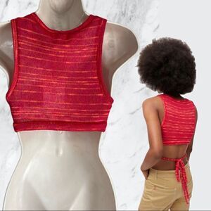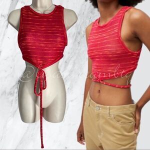 Urban Renewal Vintage Remnants Pink/Red Tie-Back Knit Wrap Crop Top