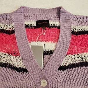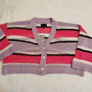 NWT Urban Revivo deep v cropped oversized cardigan in striped cream, black, dark pink and lavendar size 6