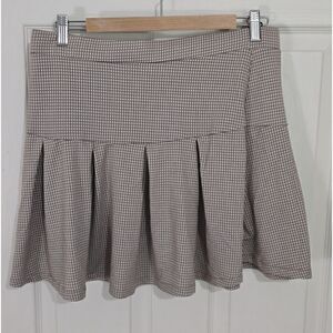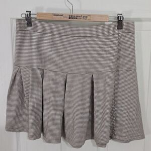 Urban Romantics, beige white gingham checkered skater peplum pleated skirt small