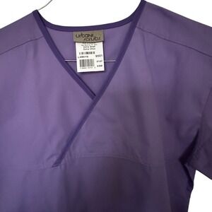 Keywords: Urbane Scrubs, scrub top, medical uniform, healthcare apparel, crossover neckline, pocket scrub top, purple scrub top, women's scrubs, nursing uniform, hospital wear, medical wear, work uniform, small scrubs, extra small scrubs