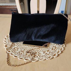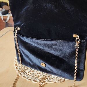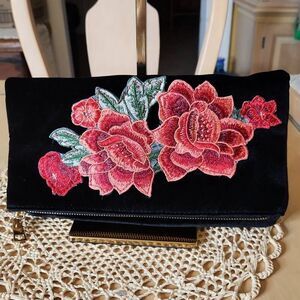 Beautiful Urban expression fold overblack velvet floral embroidered clutch or shoulder bag