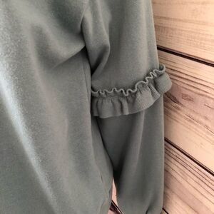 Green-blue floral pattern ruffle sleeve Crewneck sweatshirt