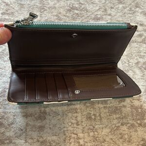 Stylish wallet with bold green and cream stripes. Perfect for everyday use.