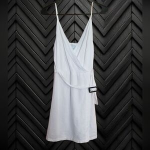 urban outfitters Amanda wrap dress, with belt buckle. Lightweight linen white dress