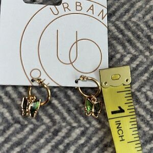 Urban outfitters Earrings Green Butterfly Gold Hoops New