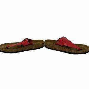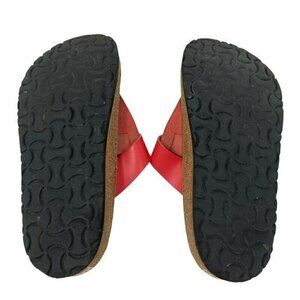 Uriel Womens T-Strap Soft Footbed Sandals Red Leather Cork Slip On Buckle 7 EUR 37