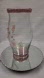 Clear urn vase with green and pink floral designs and green and pink rhinestones. 8"H, 4.5"W (vase fillers not included)
