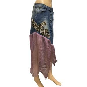 Ursime Y2K sequin embellishment pink ruffles fishtail denim midi skirt size L