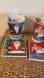 This set belonged to my mom. Excellent never used condition. As I was taking pictures I noticed one of the coasters is cracked!(pictured). NO! The cutest one too! It’s still cute and will come with but dang! Other than this set of four stoneware Christmas themed mugs with matching coasters. One coaster is cracked, other than that perfect! Clean home!