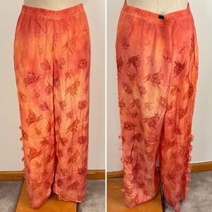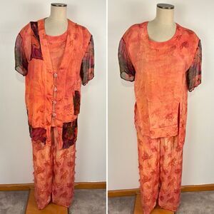 Uru Pants Tunic Vest VTG Womens One Size Orange 3 Piece Set Boho Lagenlook