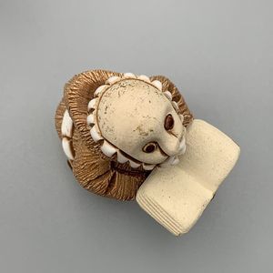 Features: Textured, Painted accents on cross, shoes, belt, face, beard and back of book.