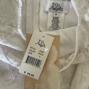 Us Angels White A-line Bell Sleeve Mock Lace Neck Dress