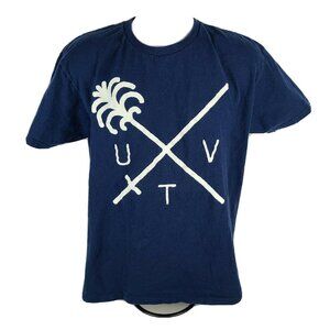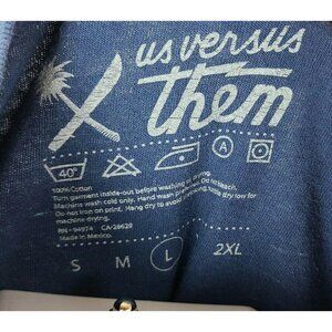 Us Versus Them T-Shirt Mens Size Large Sword Palm Tree Blue Short Sleeve Tee