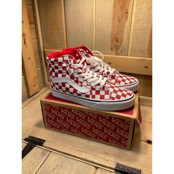Description: US7 NEW Vans Filmore Hi Shoes Womens Canvas High Top Red White Checkerboard