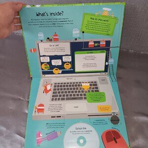 Up for sale is a Usborne Lift-the-Flap Computers and Coding book. This is a great educational book for children, featuring over 100 flaps to lift to reveal what goes on inside a computer and how coding works. It is perfect for sparking an interest in technology and computer science in a fun, simple, and straightforward way. The book includes extra help and resources online, making it an excellent resource for parents and teachers. I think this is an awesome book for beginners who are just starting to get an interest of the ins and outs of computers. There are 14 pages and books is hardcover. This book is in very nice shape and doesn't look to have much use. Thanks for looking!