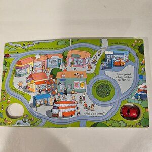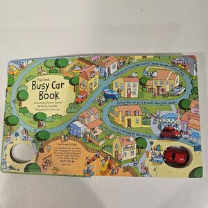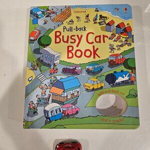 This Usborne Pull Back Busy Car Book is a children's book board book with a pullback toy car and four built in tracks. Books pages feature bright illustrations that follow the car's journey through different locations. Including towns and countrysides, the book is designed for children to enjoy by pulling back the car and watching it whizz around the track on each page. The book's authors are Fiona Watt and Stefano Tognetti. The book was gently used at Grandma's house condition. Size 9.5 inches by 11 inches book. Car 2 inches. Non-smoking pet free home.