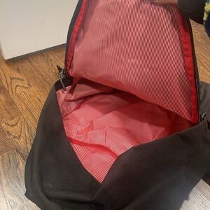 This item is used but in good condition, probably could throw it in the washing machine if you want however, this is a great quality bag, adjustable straps, gender neutral you can slip your laptop in the back of it