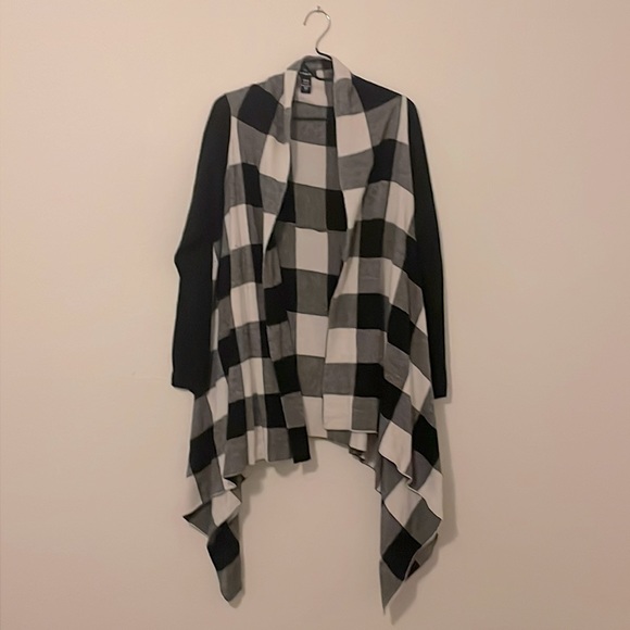 Black and white checkered drape cardigan