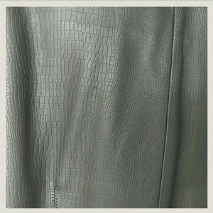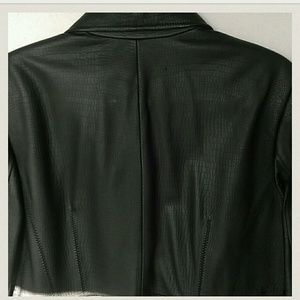 Used Women's ALFANI faux leather jacket SIZE L Really well kept and looks brand new. Only defects include 4 very tiny holes in the pack portion of the jacket, but otherwise in extremely good condition.