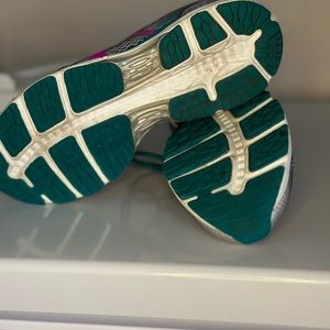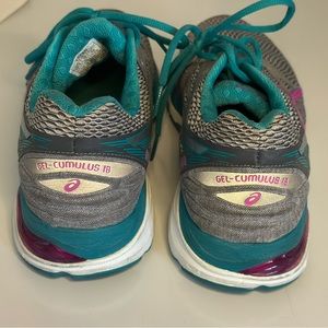 Used ASICS Gel-Cumulus 18 women’s size 10 teal, hot pink & silver