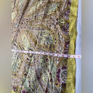 Add a pop of color to your outfit with this gorgeous yellow Art Silk Print Scarf. The intricate Bunarasi style and 100% silk material make it a perfect addition to any fashion-savvy woman's collection. This scarf is perfect for dressing up any casual outfit or adding a touch of elegance to a formal attire. Whether you're attending a party or going out for a casual lunch, this scarf is a versatile accessory that will elevate your look.
