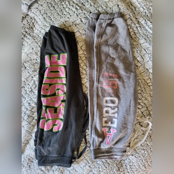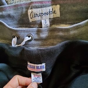 3 Pair of used cropped sweats. The brands are as follows: Aeropostale S, Basix of America M, and Vanity M, in used condition, super comfy and warm.